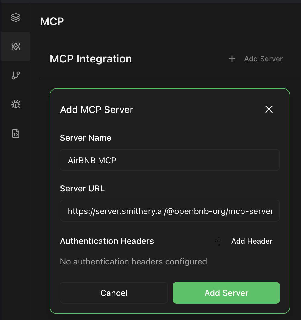 ChainGraph automatically wraps any MCP server into native workflow nodes by simply providing the server URL, eliminating the need for custom integration code or manual API mapping. The system dynamically discovers available tools, prompts, and resources from connected MCP servers and generates corresponding node interfaces with full type safety and schema validation. This auto-discovery mechanism continuously syncs with server capabilities, automatically updating node configurations when servers add new tools or modify existing ones, ensuring workflows remain current without manual intervention.