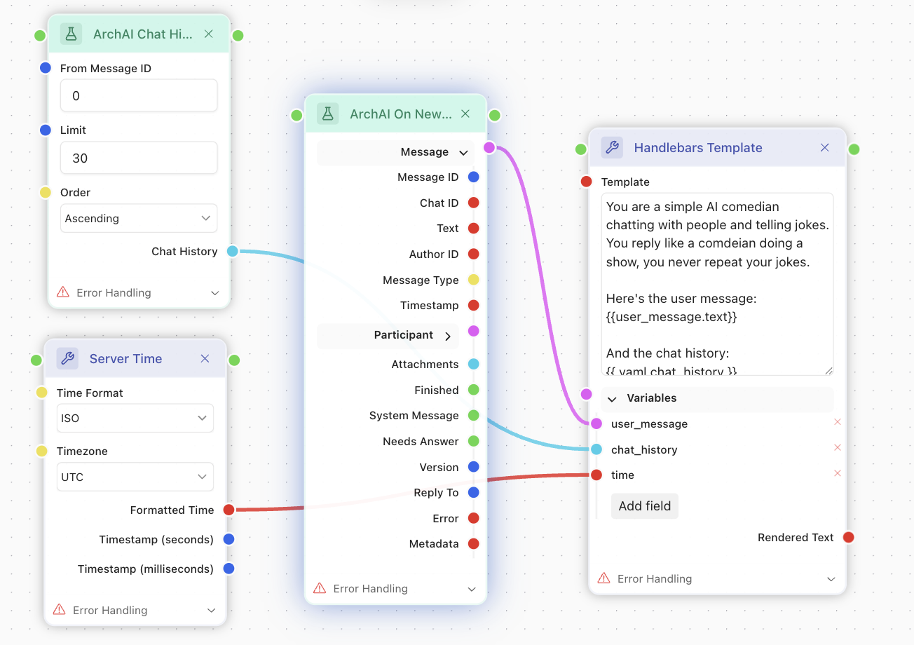 - chat_history, the yaml operator before it tells us that it will be serialised into YAML, meaning we can provide Array, Object, or any other type to it;