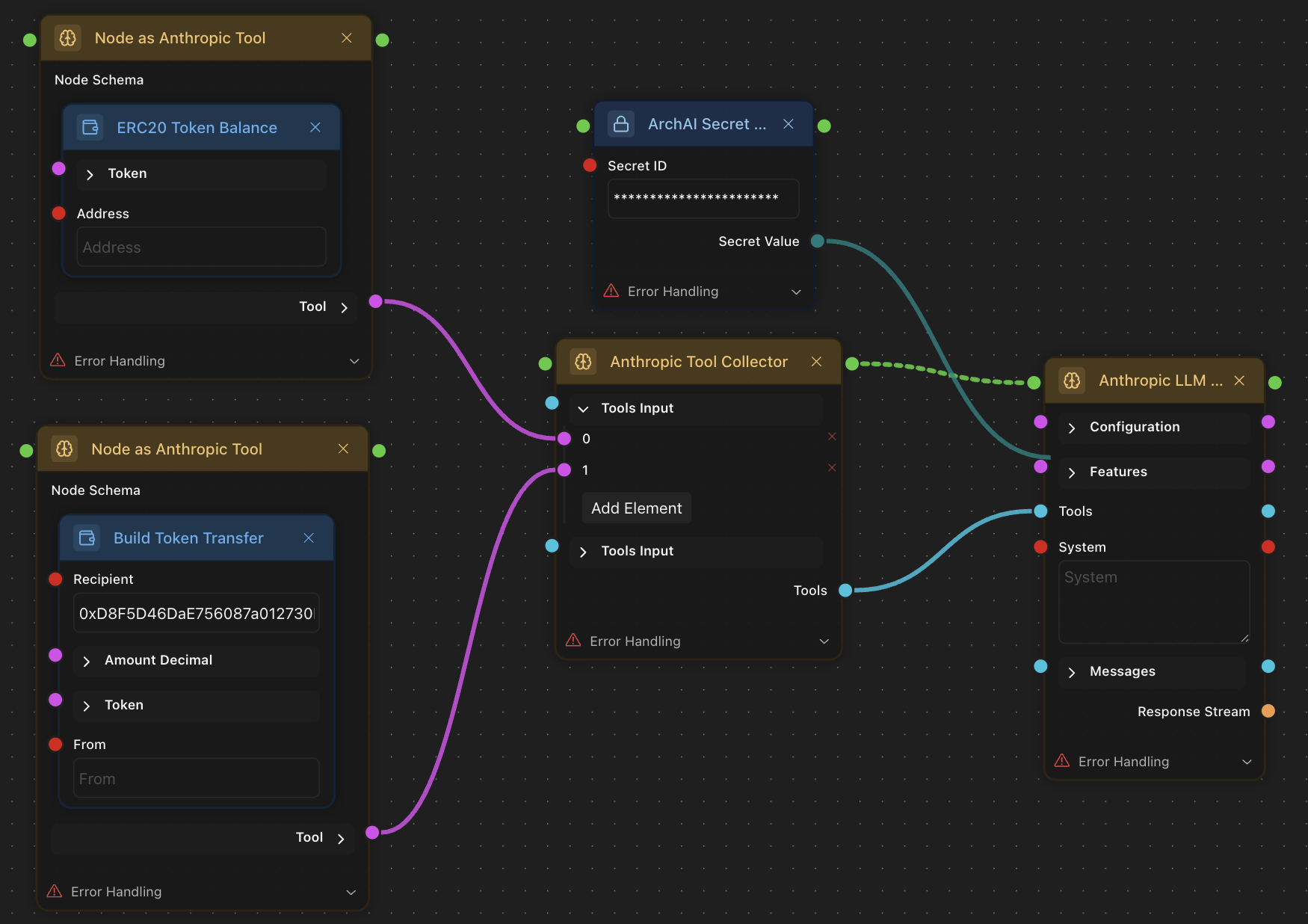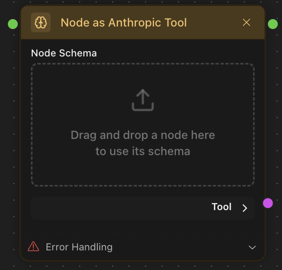 Any node can become an Anthropic Tool with Node as Antropic Tool.