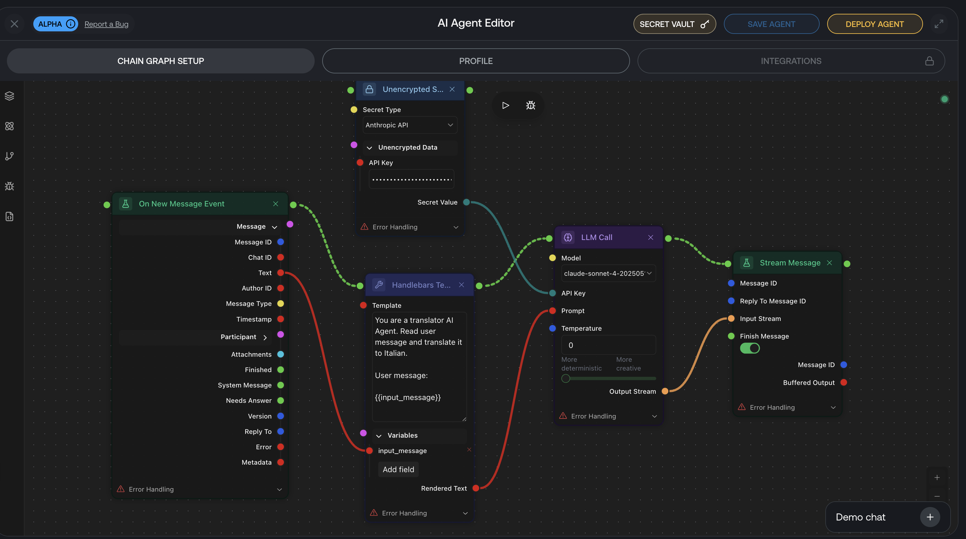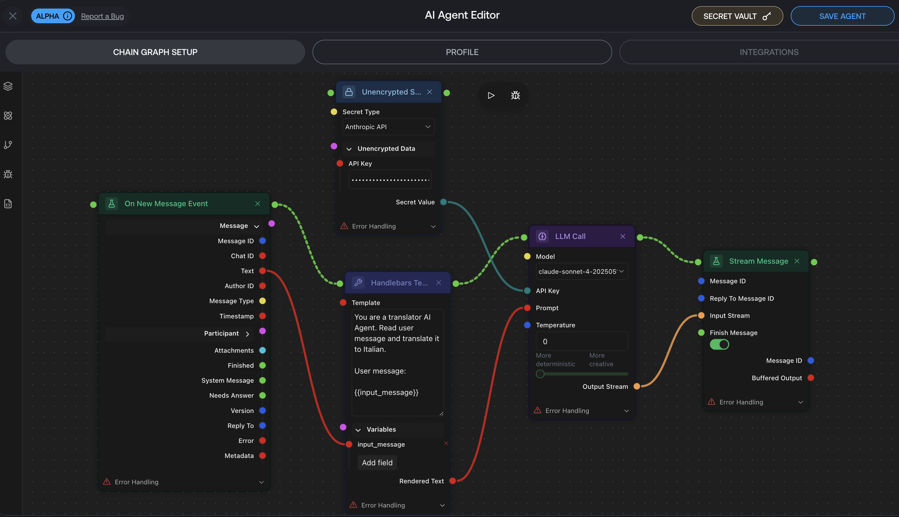 - Your agent will be assigned and id and the flow will be saved so you can return to it at any time.